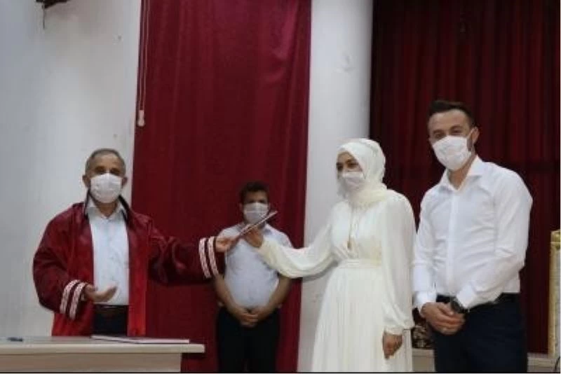 Manisa’nın Gördes ilçesinde genç çiftin nikahı, İçişleri Bakanlığının genelgesi uyarınca yeni tip korona virüs (Covid-19) tedbirleri kapsamında maske takılarak; sosyal mesafe kuralına uygun bir şekilde Gördes Belediye Başkanı Muhammet Akyol tarafından kıyıldı.