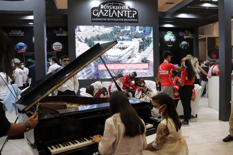 Büyükşehir Belediyesi Bilgi İşlem Daire Başkanlığı ve iştirak olan Gaziantep Bilişim tarafından yapılan akıllı kent uygulamaları, yazılım eğitimleri, mobil uygulamalar hakkında bilgi alan gençler, gerçekleşen eğitimler ve kendi projeleri hakkında görüş alışverişinde bulundu. Gaziantep Büyükşehir Belediyesi Sanat ve Meslek Eğitim Kursları’nın pandemi döneminde verdiği lise ve üniversitelere giriş sınavlarına yönelik çevrimiçi uzaktan eğitimler hakkında deneyimler ve çalışmalar aktarıldı, kurslar anlatıldı. Büyükşehir Belediyesi Gençlik Hizmetleri ve Spor Daire Başkanlığı ise yapılan icraatları, spora ve sporcuya verdiği destekler ile eğitim alanında projeler hakkında sorular yanıtlandı. Stantta kurulan e-spor alanı ve projesi gençler tarafından büyük ilgi ile karşılandı. Kültür ve Turizm Daire Başkanlığı’na bağlı genç mozaik ustaları, Gençlik Orkestrası ve Genç Ritim Grubu performanslarını sergiledi.