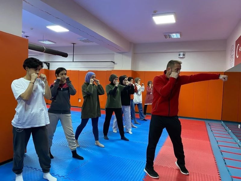 Düzce’de şiddetle mücadele kapsamında kadınlara çeşitli eğitimler verilmeye başlandı. Bu kapsamda, Kalıcı Konutlar Gençlik Merkezi’nde genç kadınlara, şiddete karşı neler yapılması gerektiği ile ilgili bilgilendirmelerde bulunuldu. Gençlik ve Spor İl Müdürlüğüne bağlı kurslarda boks antrenörü olarak görev yapan Aslan Doğan, savunma teknikleriyle ilgili hem uygulamalı hem de teorik olarak kadınları bilgilendirdi.