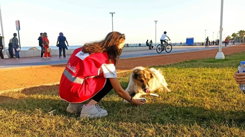 Genç Kızılay Mersin Üniversitesi topluluğu pazar günü sahildeki sokak hayvanlarına mama dağıtarak besleme yaptı.