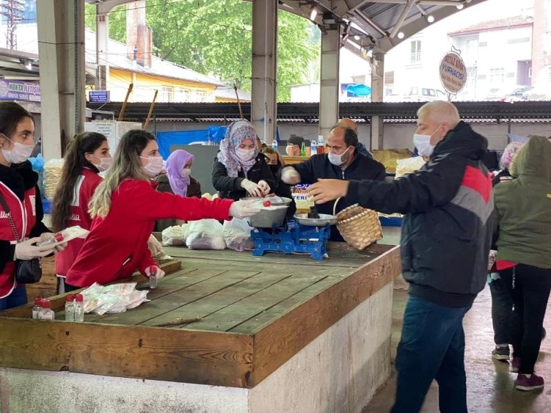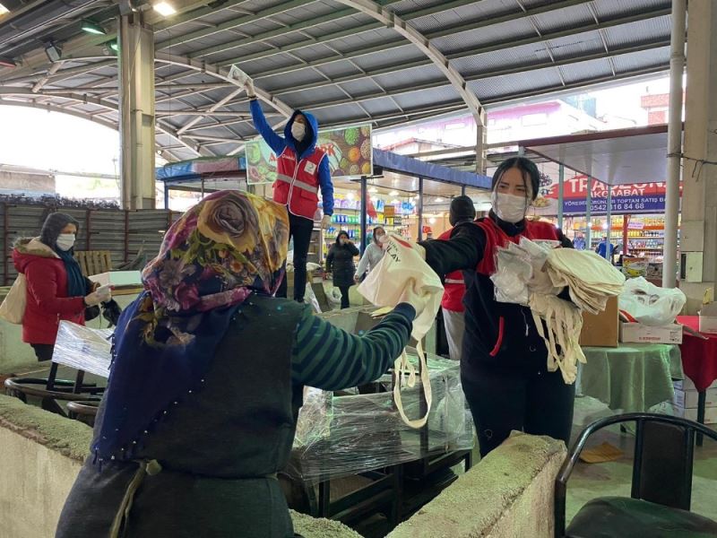 Zonguldak’ta Genç Kızılay ekipleri halk pazarında 7 bin 500 maske dağıttı.