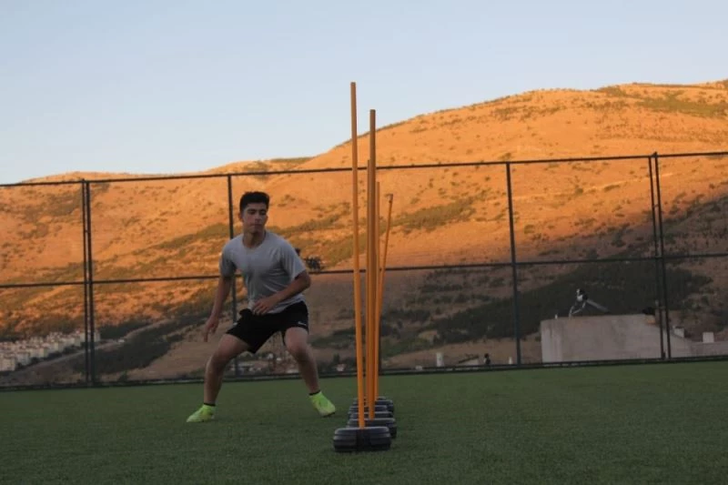 Beşiktaş ve Başakşehir’in ilgilendiği genç yetenek Eray Özbek, tatil süresince memleketi Yahyalı’da antrenmanlara devam ediyor.