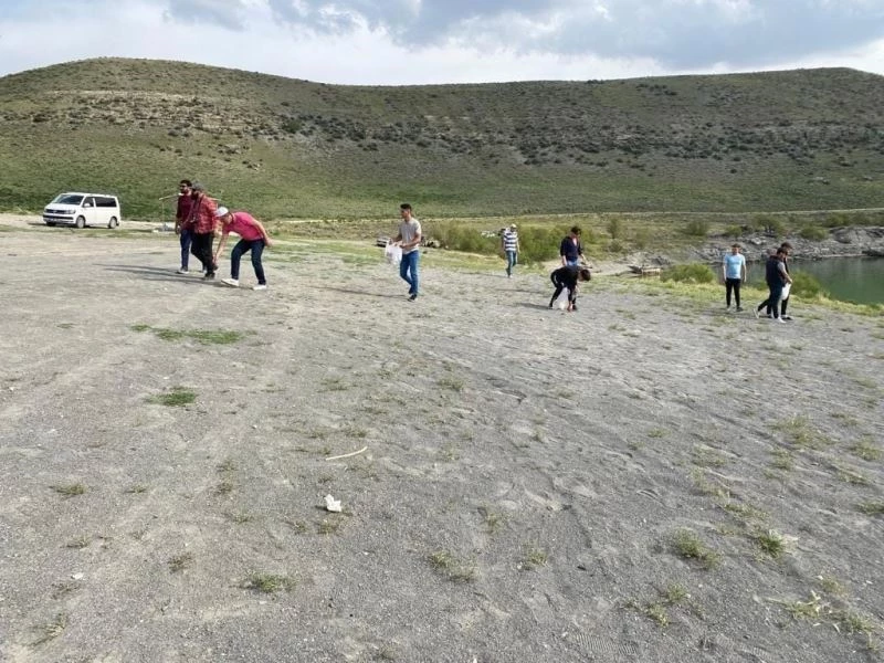 Konya’nın Karapınar ilçesinde bulunan Acıgöl’de bir grup genç göl çevresinde bulunan çöpleri toplayarak temizlik yaptı.