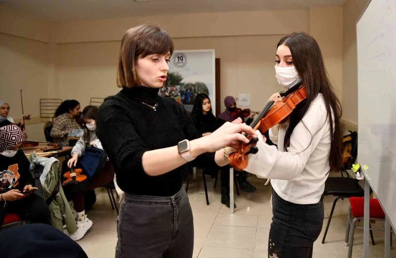 Tepebaşı Belediyesi Gençlik Merkezleri’nde gençler, ücretsiz olarak gerçekleştirilen 38 farklı branştaki eğitim çalışmasından keman kursuna da yoğun ilgi gösteriyor.