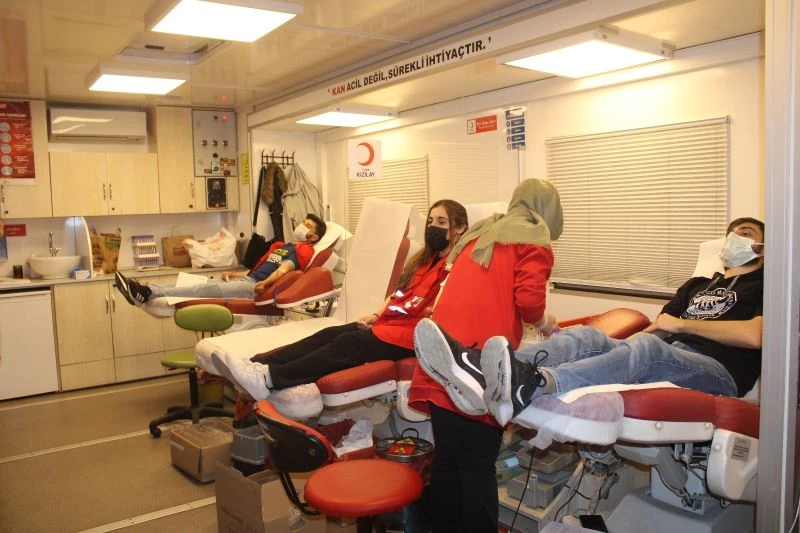 Özellikle kan ihtiyacının çok olduğu ve kan bağışının önemini bir kez daha vurgulamak anlamıyla toplanan Kızılay Gençlik Kolları, 17 kişilik ekibiyle kan bağışında bulundu.