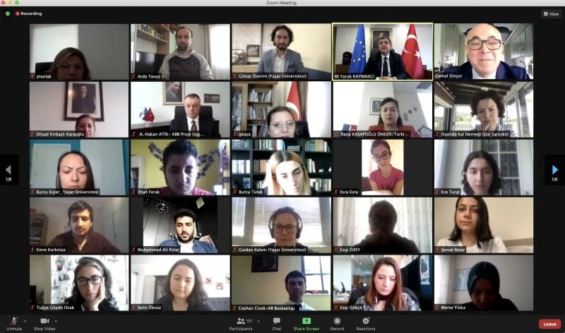 Yaşar Üniversitesi AB Merkezi Müdürü ve Jean Monnet Kürsüsü Başkanı Doç. Dr. Gökay Özerim moderatörlüğünde gerçekleştirilen çevrim içi etkinlikte, Dışişleri Bakanlığının çeşitli başkanlık ve dairelerinden temsilciler, öğrenciler ve gençler için AB fırsatları hakkında bilgi sunarak deneyimlerini paylaştı.
