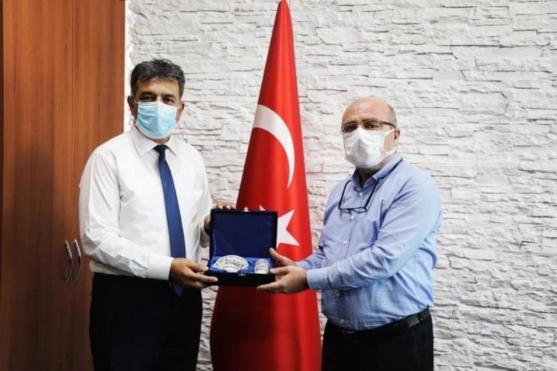 Ziyaretin sonunda Kayseri Üniversitesi Rektörü Prof. Dr. Kurtuluş Karamustafa, Gençlik ve Spor İl Müdürü Murat Eskici’ye Kayseri Üniversitesinin çini işlemeli fincan takımını hediye etti.