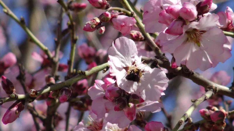 Batman’ın Gercüş ilçesine erken gelen baharla birlikte badem ağaçları çiçek açtı.