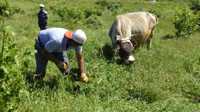 Bahçede babasına yardım ederek ot toplayan Devran Şimşek ise, "Yeşil ot topluyoruz, kurutup kışın hayvanlarımıza vereceğiz. Hayvanlarımızı çok seviyoruz. Babamıza yardıma geldik. Evde çok sıkılıyorduk buraya geldik, burası çok güzel" diye konuştu.