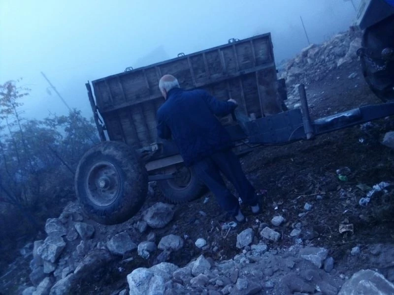 Batman’ın Gercüş ilçesinde, traktörün arkasında bulunan toprak yüklü römork devrildi.