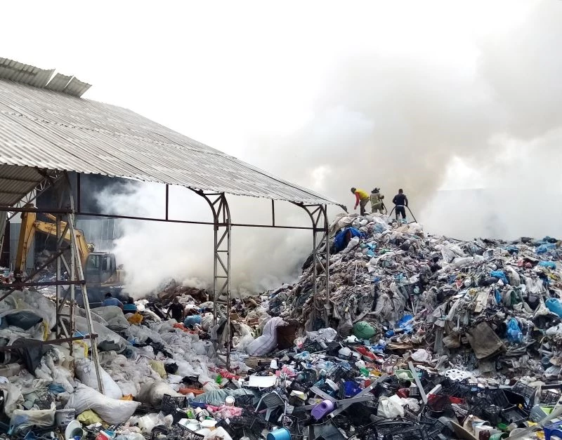 Bursa’nın İnegöl ilçesinde faaliyet gösteren geri dönüşüm tesisinde yangın çıktı.