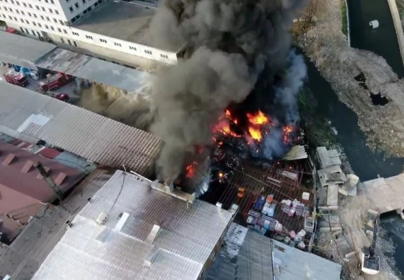 Halkalı Dereboyu Caddesi’ndeki geri dönüşüm tesisinde yangın çıktı. Dumanların gökyüzünü kapladığı yangın havdan görüntülenirken, itfaiye ekiplerinin çalışmaları sürüyor.