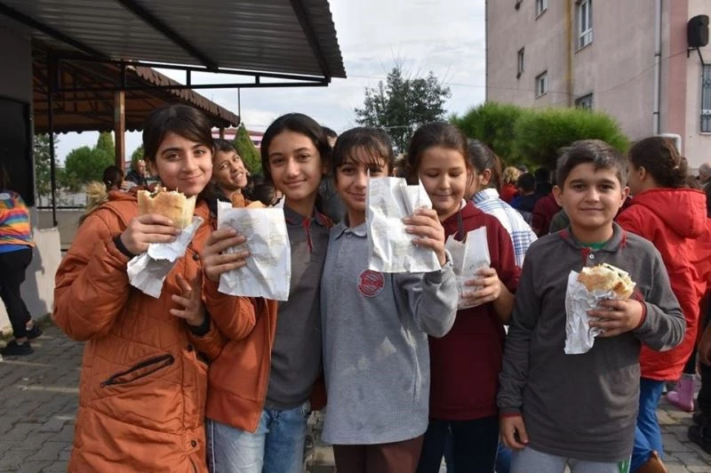 Aydın’ın Germencik ilçesinde 700 öğrenciye balık ekmek ve helva dağıtımı yapıldı.