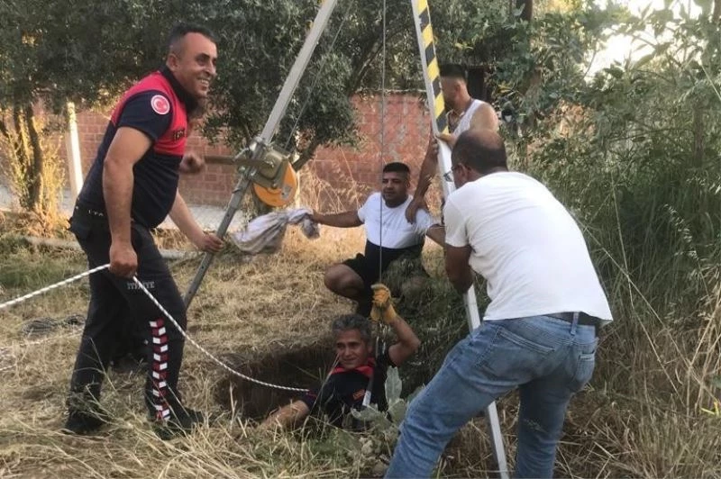 Germencik’te kuyuya düşen kedinin imdadına itfaiye ekipleri yetişti