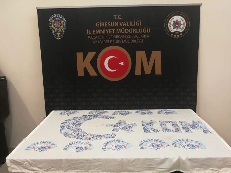 Giresun’da uygulama noktasında durdurulan araçta yapılan aramada 199 adet sahte 100 TL ve 1 adet sahte 100 dolar banknot ele geçirildi.