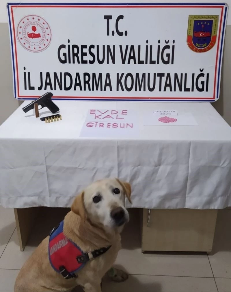 Uyuşturucu ile mücadele kapsamında Tirebolu ilçesine bağlı Hamam mahallesinde jandarma ekipleri tarafından bir şüphelinin üzerinde ve adresinde yapılan arama 220 adet uyuşturucu hap, 1 adet el yapımı tabanca, 6 adet tabanca fişeği ve 1 adet şarjör ele geçirildi. Şüpheli şahıs gözaltına alınırken, olayla ilgili soruşturmanın devam ettiği bildirildi.