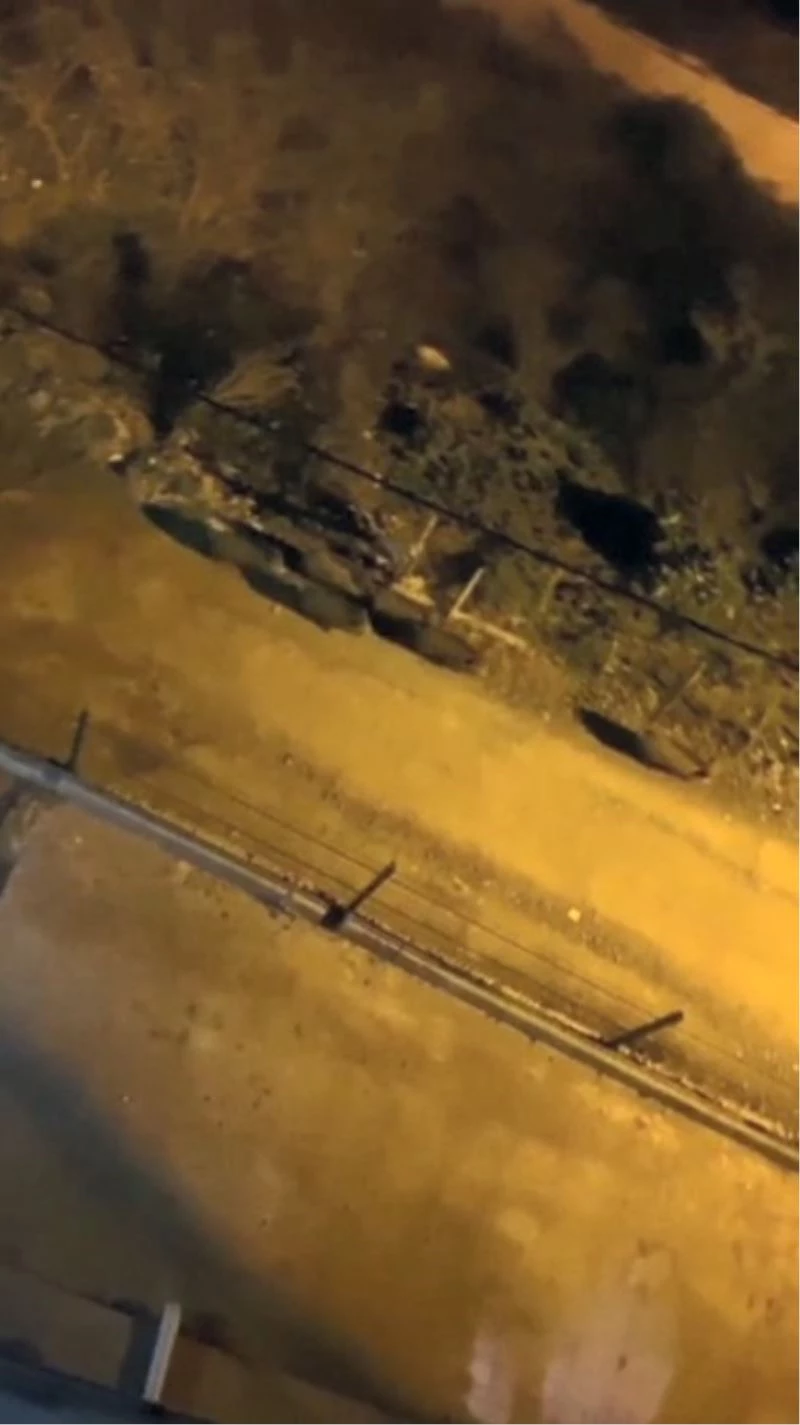 Giresun’da aç kalan domuz sürüsü yiyecek aramak için ilçe merkezine indi. Bir vatandaş ise evinin balkonundan cep telefonuyla o anları kaydetti.