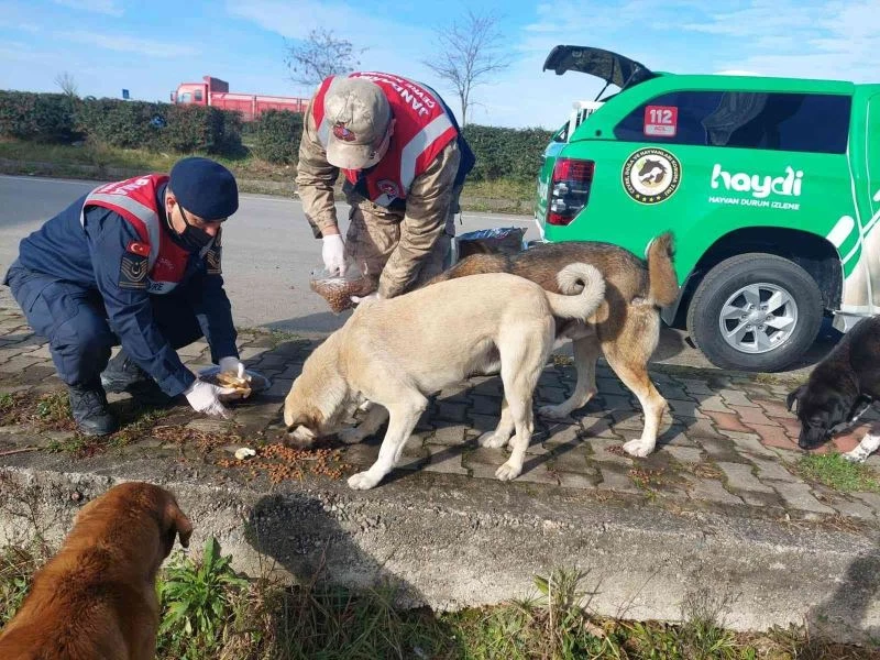 Giresun İl Jandarma Komutanlığına bağlı ekipler, kış mevsiminde yiyecek bulmakta zorlanan sokak hayvanlarını besledi ve yaralı hayvanların tedavilerini yaptı.