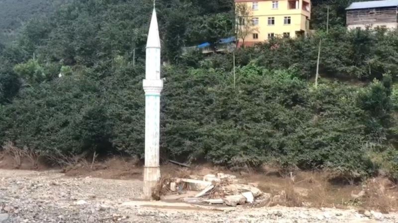 Giresun’un Espiye ilçesi Soğukpınar beldesinde objektiflere yansıyan camisi selde yıkılmış ve tek başına dere kenarında kalmış minare ilginç bir görüntü oluşturuyor.