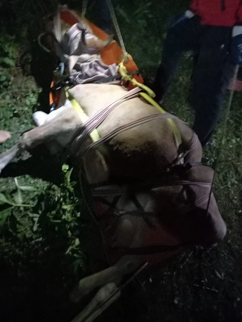 Giresun’un Bulancak ilçesinde uçuruma yuvarlanan inek AKUT ekipleri tarafından kurtarıldı.