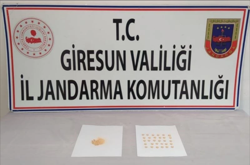 Giresun’un Espiye ilçesinde jandarma ekiplerinin düzenlediği operasyonda şüpheli bir şahsın üzerinde 39 adet uyuşturucu hap ele geçirildi.