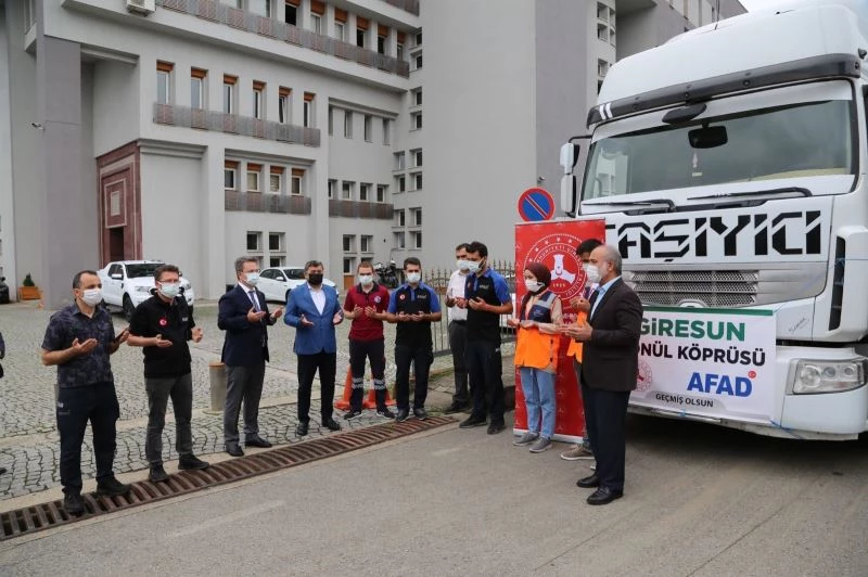 Yardım tırları, Giresun Valiliği önünden Vali Enver Ünlü ve Belediye Başkanı Aytekin Şenlikoğlu tarafından “Giresun Her Zaman Yanınızda” sloganıyla dualarla Sinop’a uğurlandı.
