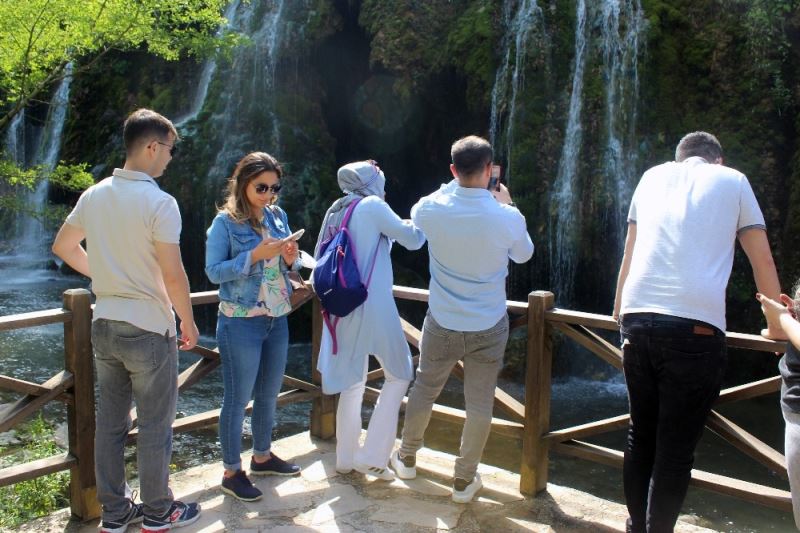 Doğal güzelliklere hayran kalan ziyaretçiler doğaya karşı bol bol hatıra fotoğrafı çektiler.