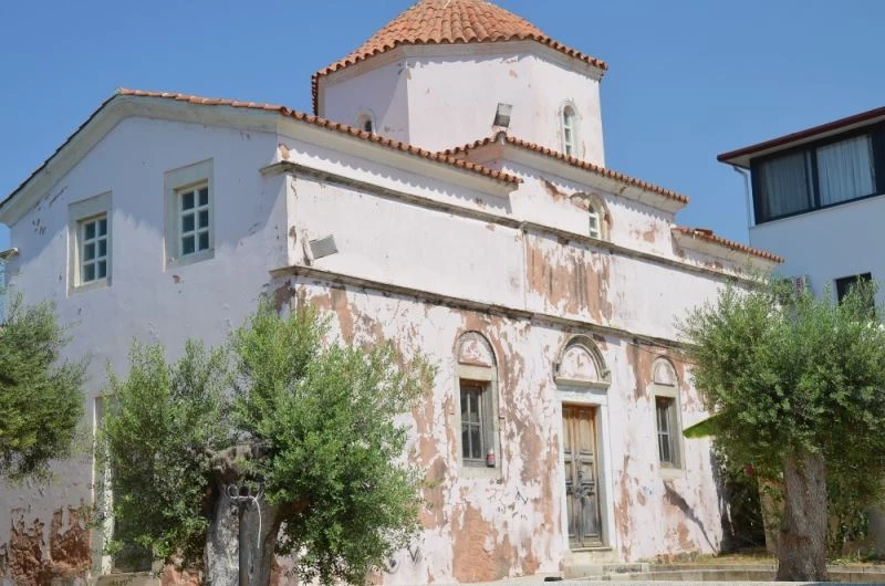 Osmanlı döneminde 1870’lerde yapılan ve işlevini Cumhuriyet yılları başlarına kadar sürdüren tarihi kilise, Rumların mübadele sonucu Yunanistan’a göç etmesi ile atıl kaldı. Bir süre sonra kiliseye bir asma kat oluşturularak okula çevrildiği öğrenilirken, yıllarca bakımsız kalan kilisedeki süsleme ve sıvaların zarar görmesi üzerine dönemin Akbük Belediyesi yöneticilerinin girişimi ile tadilat yapıldığı, restorasyonun ardından Kilise’de bir defa alınan izinle Süryani bir çiftin evlilik töreninin yapıldığı daha sonra kapalı tutulduğu öğrenildi.