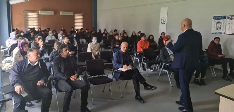 KOSGEB Düzce Müdürü Necdet Yaşar Şahin, öğrencilere girişimci olmaları durumunda verilecek desteklerle ilgili bilgiler verdi.