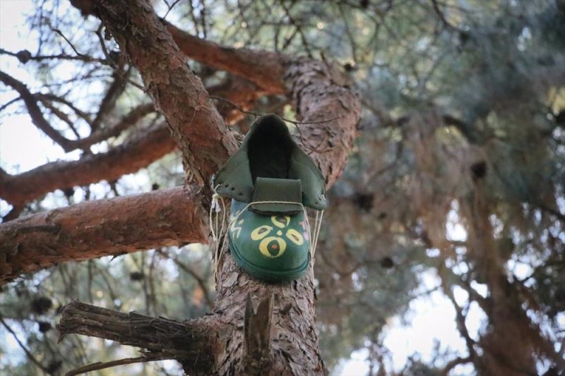 HATAY (AA) - BURAK MILLI - Hatay'in Iskenderun ilçesinde bir grup vatandas, kullanilmayan ayakkabilari çesitli islemlerden geçirip, boyayarak kus yuvasi haline getiriyor ve bunlari agaçlara asiyor.