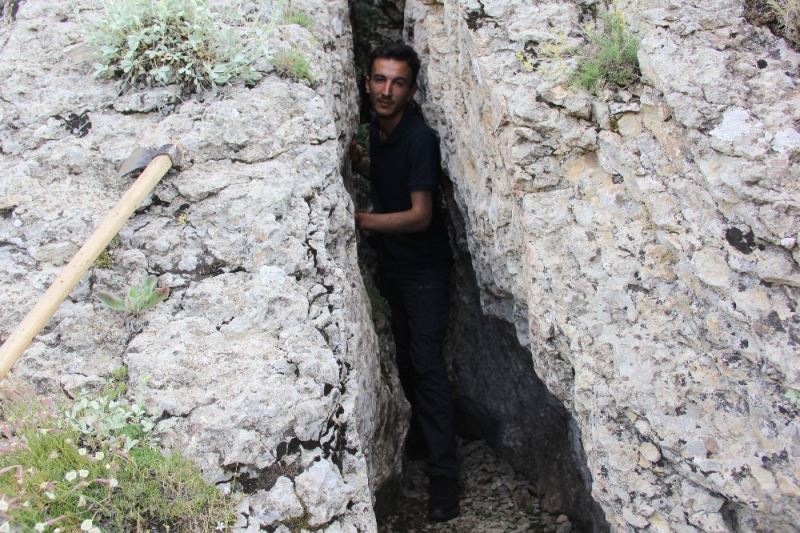 “Mağaranın girişi dar olduğu için buraya yan girmek zorundayız, düz girilemiyor”