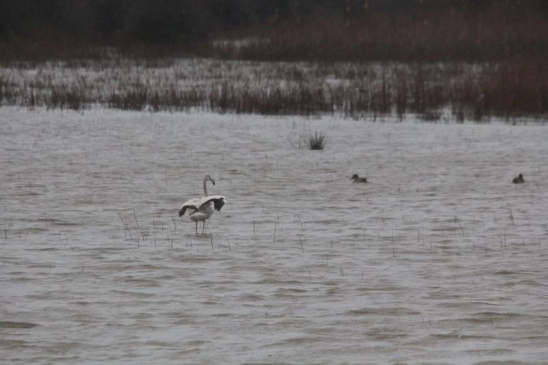 DKMP Sinop Şube Müdürlüğü’nce Sarıkum Tabiatı Koruma Alanı’nda gerçekleştirilen göç dönemi incelemeleri esnasında, Sinop’ ta pek sık rastlanmayan flamingonun tek başına göl aynası içerisinde beslendiği tespit edildi.