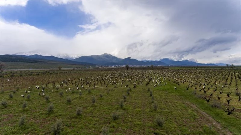 HATAY (AA) - Baharın müjdecisi leylekler, Hatay'ın Hassa ilçesindeki Amanos Dağları'nın eteklerinde mola verdi.