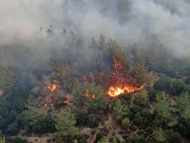 Muğla’nın Yatağan ilçesi kırsal Hacıveliler Mahallesi’nde başlayan orman yangını durdurulamıyor. Akşam saatlerinde rüzgarın da şiddeti ile yangın geniş bir alana yayılırken havadan drone ile görüntülendi.