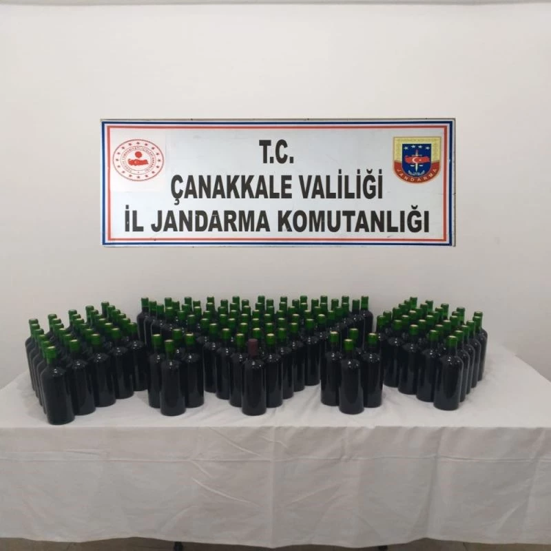 Çanakkale’nin Gökçeada ilçesi Kuzulimanı Feribot İskelesi’nde yapılan kontrollerde şüphelendikleri bir aracı durduran jandarma ekipleri, araç içerisinde yaptıkları aramada bandrolsüz ve amblemsiz cam şişelerin içerisinde toplam 105 litre kaçak şarap ele geçirdi.