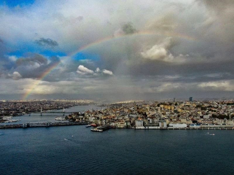 Megakentte sabah saatlerinde etkili olan yağmurun ardından İstanbul’da gökkuşağı oluştu. Birçok vatandaş yağmur sonrası oluşan gökkuşağını cep telefonları ile kayıt ederken fotoğrafçılar ise en güzel kareyi yakalamaya çalıştı. Havadan çekilen gökkuşağının görüntüsü İstanbul’un manzarası ile birleşince seyrine doyumsuz kareler ortaya çıktı. Yaklaşık 20 dakika gözüken gökkuşağı daha sonra gözden kayboldu. Görüntülerde gökkuşağının bir ucunun Haliç civarında bir uçunun da Taksim Meydanı civarında olduğu gözüktü.