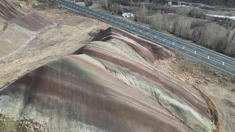 Erzurum’da bulunan gökkuşağı tepeleri rengarenk görüntüsüyle büyülüyor. Görenlere seyir zevki oluşturan gökkuşağı tepeleri havadan görüntülendi.