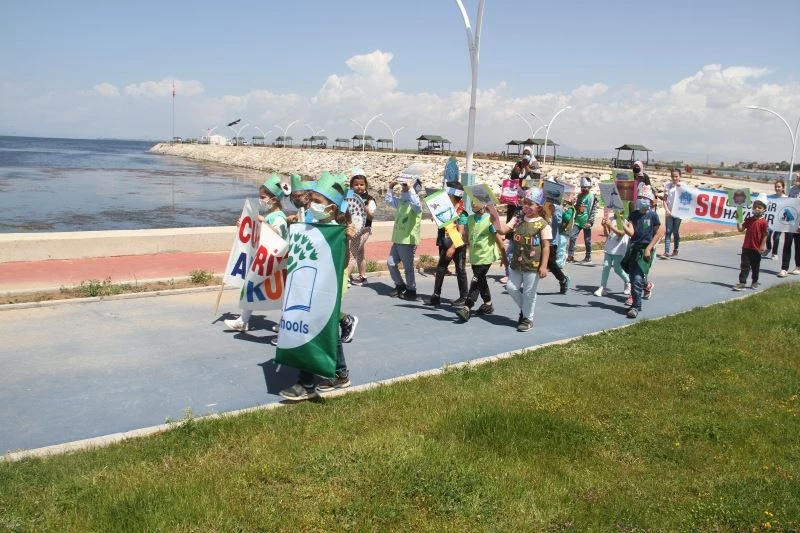 Konya’nın Beyşehir ilçesinde anaokulu öğrencileri, göl kıyısındaki Vuslat Parkı’nda düzenlenen etkinlikte yaptıkları yürüyüşle büyüklerine “Beyşehir Gölü’ne sahip çık” mesajı verdi.