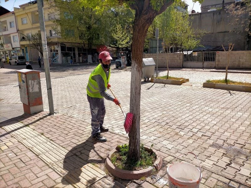 Adıyaman’ın Gölbaşı İlçe Belediyesi Park ve Bahçeler Müdürlüğüne bağlı ekipler tarafından şehir merkezindeki ağaçlar kireçlendi.