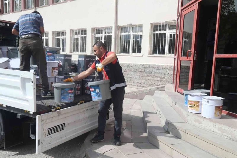 Belediye ekipleri, ilçe genelinde ilk, orta ve lise düzeyinde eğitim veren okullara boya desteğinde bulundu.