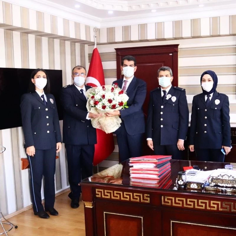 10 Nisan Polis Haftası etkinlikleri kapsamında ilçe Emniyet Müdürü Şahin Gül ve polis memurları Kaymakam Mutlu Köksal’ı makamında ziyaret etti. Kaymakam Mutlu Köksal Türk Polis Teşkilatının 176. yıl dönümünü kutlayarak, “Vatandaşlarımızın can ve mal güvenliklerinin sağlanmasında hiçbir tehdide boyun eğmeyen Kahraman Türk Polisimizin 10 Nisan Polis Haftasını kutluyorum. Geçtiğimiz 176 yılda olduğu gibi bundan sonraki yıllarda da üstün başarılar göstermeye devam edeceklerine inanıyorum” diye konuştu.