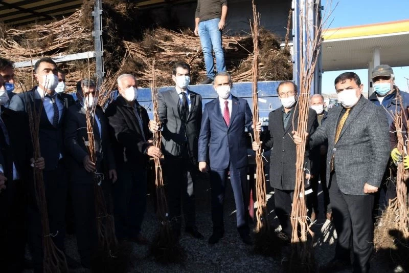 Gölbaşı ilçesi Karaburun Köyü mevkiinde düzenlenen fidan dağıtım törenine Vali Mahmut Çuhadar, Gölbaşı Kaymakamı Mutlu Köksal, İl Özel İdare Genel Sekreteri Sami Işık, Tarım ve Orman İl Müdürü Nurettin Kıyas, Gölbaşı Belediye Başkanı İskender Yıldırım, Balkar Belediye Başkanı Orhan Orhan ve çiftçiler katıldı. Her geçen yıl biraz daha üretimi artırılarak Gölbaşı ilçesinin tarımı başta olmak üzere sosyo-ekonomik yapısına ciddi katkılar sağlayan hurma üretimi ilçenin geleneksel tarım algısını da değiştiriyor. Fidan dağıtım töreninde konuşan Vali Mahmut Çuhadar “ Bugün İl Özel İdaremizin desteği ile Meyveciliği Geliştirme Projesi kapsamında çiftçilerimize yaklaşık 34 bin Cennet Hurması fidanı dağıttık. İlimizde yetiştirilen hurma üretimi miktarı, Türkiye üretiminin önemli bir bölümüne tekabül ediyor. Hedefimiz Gölbaşı ilçesini hurma üretiminde daha ileriye taşımak. Gölbaşı ilçemiz hurma üretiminde şu anda Türkiye sıralamasında beşinci sırada yer almaktadır. Bunu ilk sıraya çekme hedefimiz var. Bu yıl il özel idaremiz, çiftçilerimizi desteklemek amacıyla Meyveciliği Geliştirme Projesi kapsamında toplam 842 Bin TL’lik bir kaynak ayırdı. Bu kaynakla çiftçilerimize dağıtılan 34 bin adet Hurma Fidanının yanında 20 bin civarında Nar Fidanı 19 bin adette Ceviz Fidanı dağıtacağız. Bu projenin hayata geçirilmesi noktasında emek veren, il özel idaresine, il tarım ve orman müdürlüğümüze, kaymakamımıza ve emeği geçen herkese teşekkür ediyor, hurma fidanlarının çiftçilerimize hayırlı ve uğurlu olmasını diliyorum” diye konuştu.