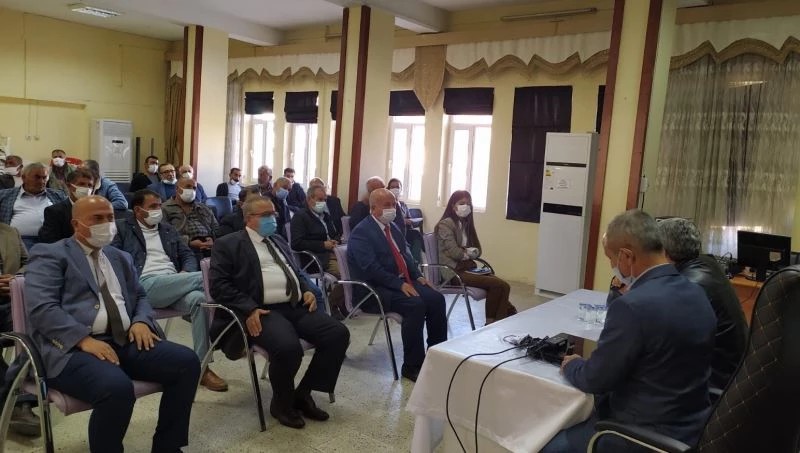 Halk eğitim merkezi müdürlüğü toplantı salonunda, İl Tarım ve Orman Müdür Yardımcısı Mahmut Nedim Baybatmaz, İlçe Müdürü Erdal Yılmaz, teknik personel ve çok sayıda çiftçinin katılımıyla gerçekleştirildi.
