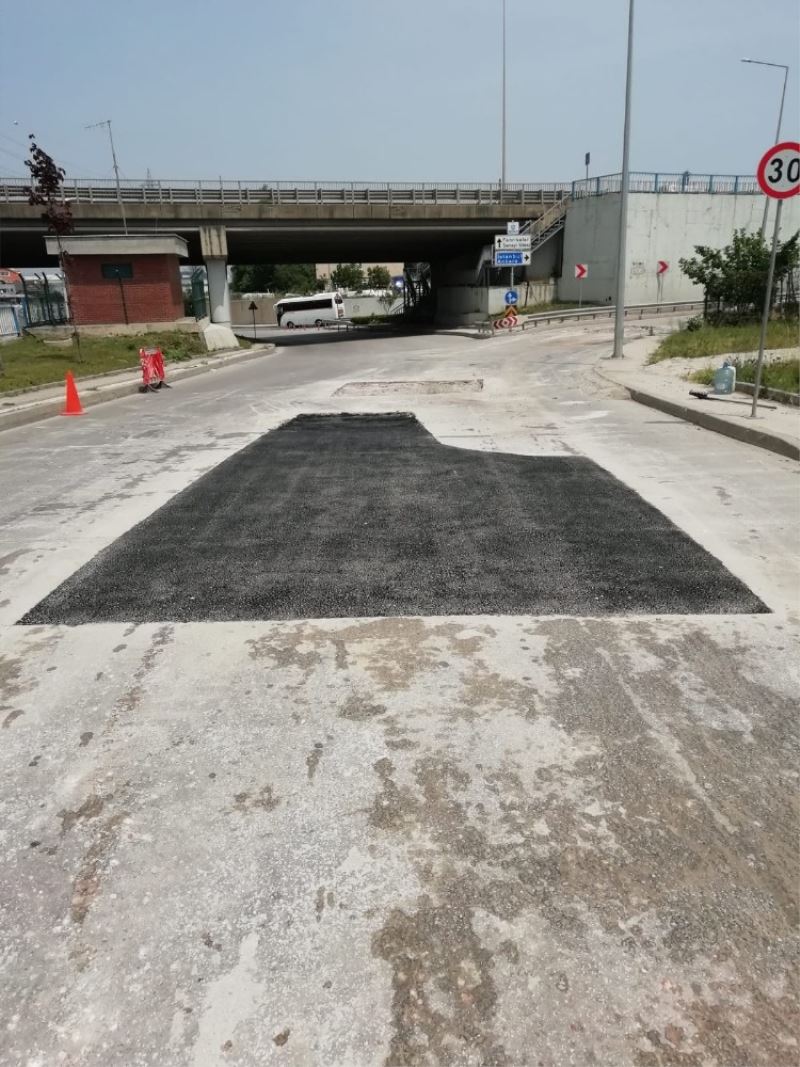 Kocaeli Büyükşehir Belediyesi tarafından Gölcük ilçesi Asar Deresi Kavşağı D-100 Karayolu bağlantı yollarında yol onarımı yapılıyor.