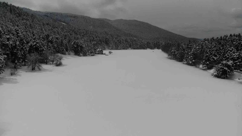 Bolu’nun gözde turizm merkezi Gölcük Tabiat Parkı. beyaz örtüsüyle tatilcilerin ilgi odağı oldu. Kar kalınlığının yarık metreyi bulduğu tabiat parkının havadan görüntüsü ise mest etti.