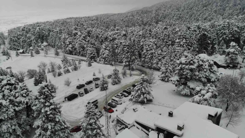 Bolu’da kar kalınlığının 1 metreyi geçtiği Gölcük Tabiat Parkı manzarasıyla görenleri mest etti.