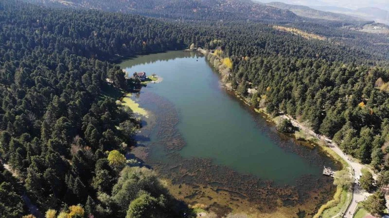 Bolu’nun önemli turizm merkezi Gölcük Tabiat Parkı’nda sonbaharın gelişiyle birlikte renk cümbüşü yaşatan ağaçların havadan görüntüsü mest etti.