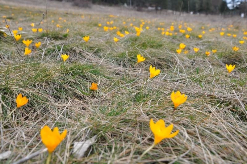 Kütahya’nın Simav ilçesine 15 kilometre uzakta bulunan bin 450 rakımlı Gölcük mesire alanında, baharın müjdecisi çiğdemler çiçek açtı.