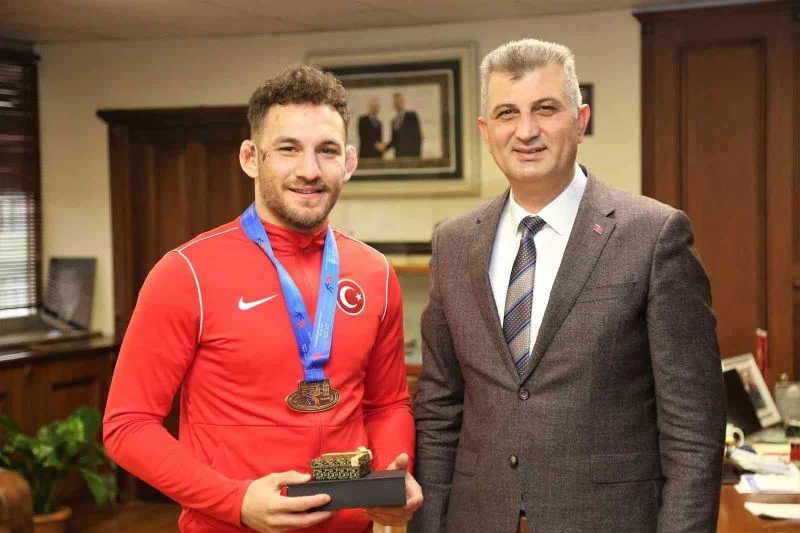 Gölcüklü milli güreşçi, Başkan Sezer’i ziyaret etti