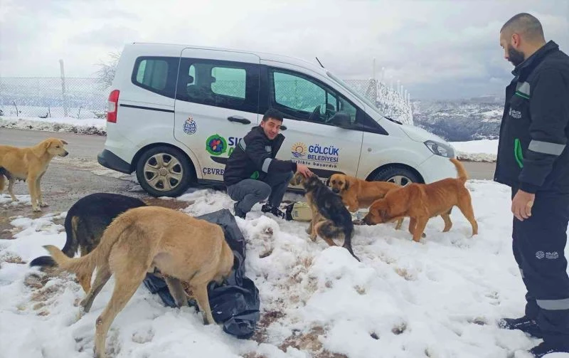 Gölcük Belediyesi, ilçede kar yağışının etkili olduğu kırsal mahallelerde sokak hayvanlarına yönelik mama desteğini sürdürüyor.